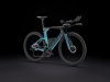 Einen ultraleichten Rahmen aus 800 Series OCLV Carbon, windschnittige Rohre mit Kammtail Virtual Foil Profil (KVF), eine Speed Concept Carbongabel mit aerodynamischem Profil, vibrationsdämpfendes IsoSpeed und integrierte Aufbewahrungslösungen für Verpflegung, Flüssigkeit und Pannenkit. Dazu gibt es einen drahtlosen, elektronischen Shimano Ultegra Di2 12fach-Antrieb, eine vollständig integrierte Lenker/Vorbau-Einheit, einen triathlonspezifischen Bontrager Hilo Comp Sattel für eine aggressive Aero-Sitzposition, Scheibenbremsen für zuverlässige Bremsleistung und Bontrager Aeolus Pro 51 Laufräder aus OCLV Carbon.